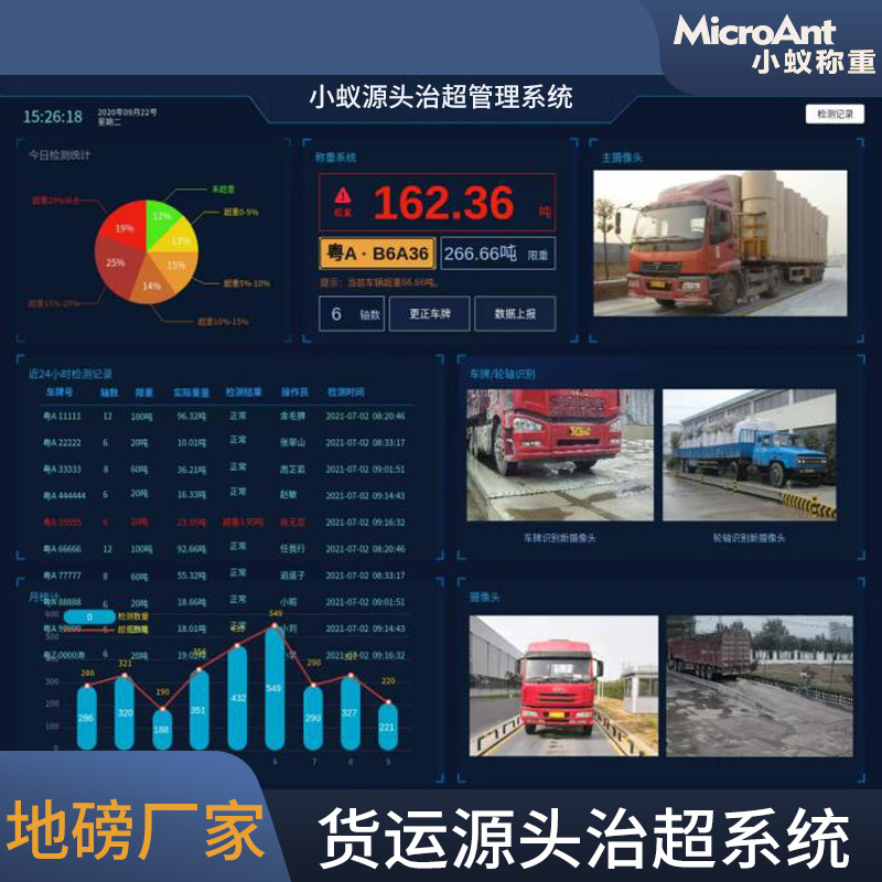 园区、大宗货物集散地“四类场站”等安装治超检测系统。安装车牌识别、轮轴检测、重量检测、视频监控、物